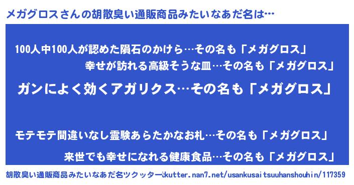 | 意味不明あだ名 | 『自称メガグロス』『永久保存メガグロス』 |