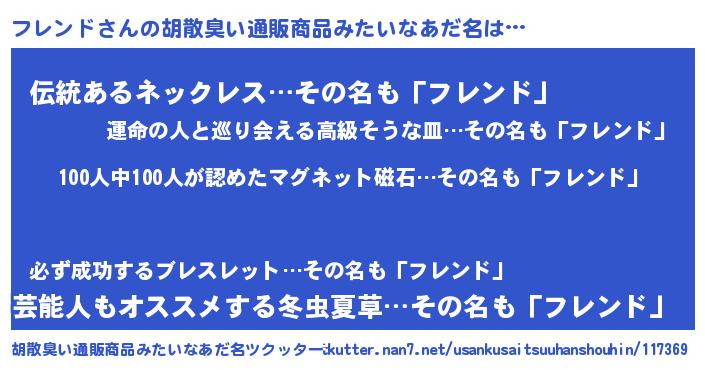 | ヘコむあだ名 | 『フレを』『豆乳』『フレもー』 |