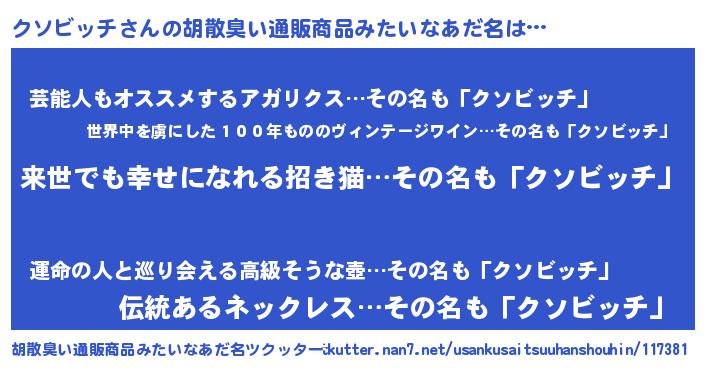 | 欧米人風あだ名 | 『アンジェラ・クソビッチ』 |