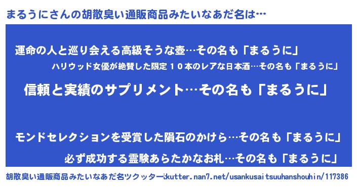 | 意味不明あだ名 | 『めかぶ科まるうに属』 |