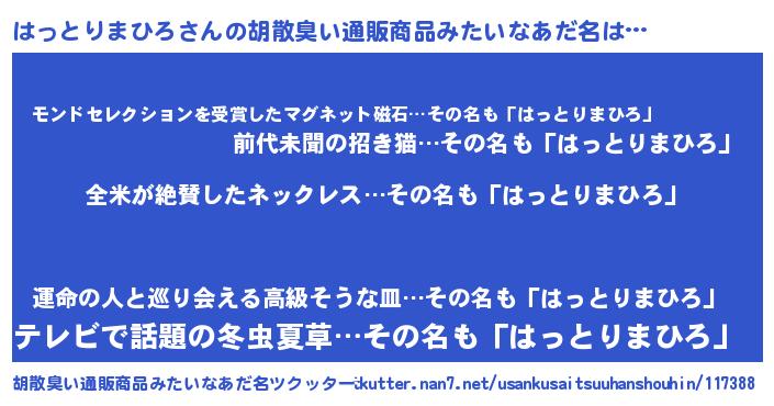 | ヘコむあだ名 | 『はっっぺ』『はっとりまひろ(笑)』 |