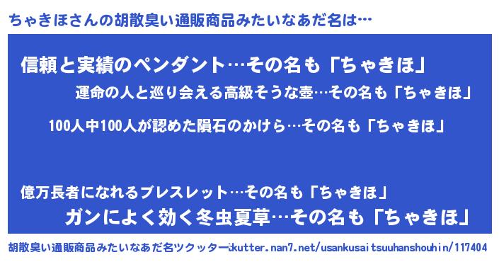 | ヘコむあだ名 | 『ちゃっちょ』『豆乳』『ちゃにー』 |