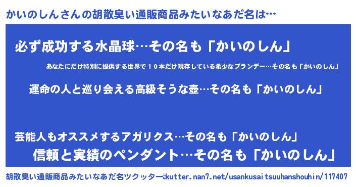 | 欧米人風あだ名 | 『アンジェラ・かいのしん』 |