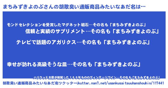 | 肩書あだ名 | 『まちみずきよのぶ総統』 |