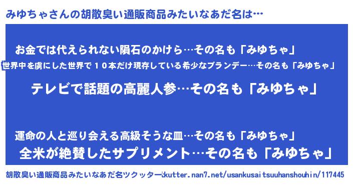 | 意味不明あだ名 | 『自称みゆちゃ』『みゆちゃフォーエバー』 |