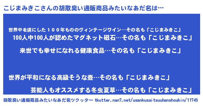 | 伝説のあだ名 | 『古より伝わる暗殺者こじまみきこ』 |