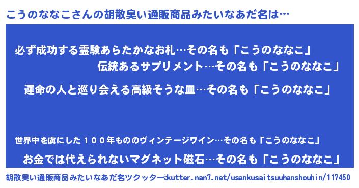 | 欧米人風あだ名 | 『こうのななこクリステル』 |