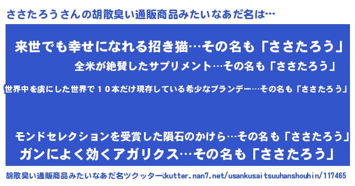 | ヘコむあだ名 | 『ささたろう(遠い目)』『ささっぺ』 |
