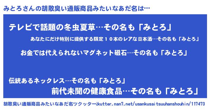 みとろさんの胡散臭い通販商品みたいなあだ名をツクッター!