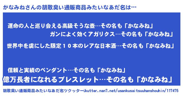 | 意味不明あだ名 | 『住所不定無職かなみね(56歳)』 |