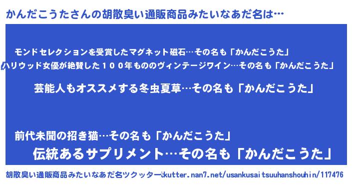 | 意味不明あだ名 | 『自称かんだこうた』 |