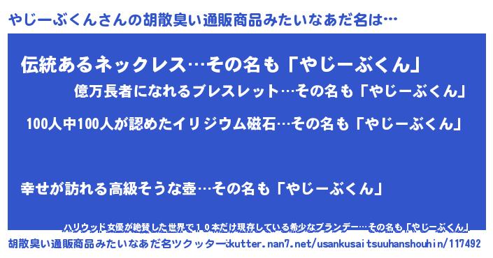 | 男性向けラノベタイトル風あだ名 | 『ヤジーブクンスレイヤー』 |