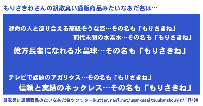 | ヘコむあだ名 | 『もりにゅー』『つくし』『もりお』 |