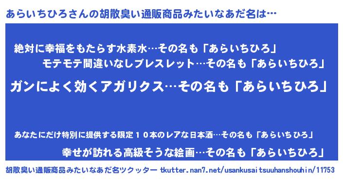 | 意味不明あだ名 | 『自称あらいちひろ』 |