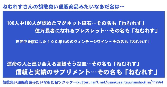 | 意味不明あだ名 | 『住所不定無職ねむれす(13歳)』 |