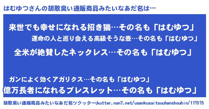 | ヘコむあだ名 | 『はむ太郎』『はむゆつ(笑)』 |