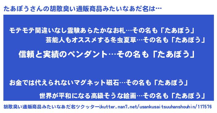 | 意味不明あだ名 | 『とにかく怪しいたあぼう』 |