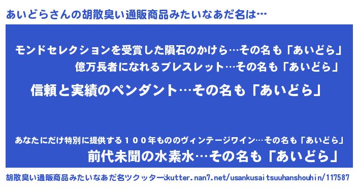 | 意味不明あだ名 | 『とにかく怪しいあいどら』 |