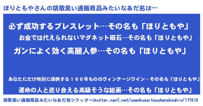 | 欧米人風あだ名 | 『ケンブリッジほりともや』 |