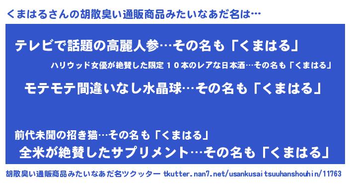 | 自動車の名前っぽいあだ名 | 『クマティマ』『ランクマギーニ』 |
