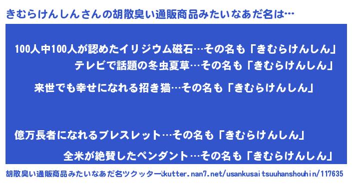 | 意味不明あだ名 | 『永久保存きむらけんしん』 |