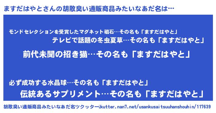 | ヘコむあだ名 | 『ますだはやと(笑)』『ますを』 |