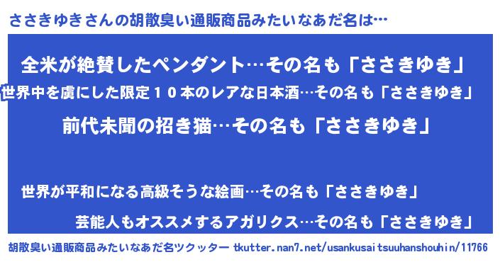| 意味不明あだ名 | 『永久保存ささきゆき』『自称ささきゆき』 |