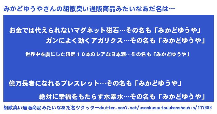 | ヘコむあだ名 | 『みかどゆうや(爆)』『みかにゅー』 |
