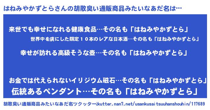 | 意味不明あだ名 | 『はねみやかずとらフォーエバー』 |