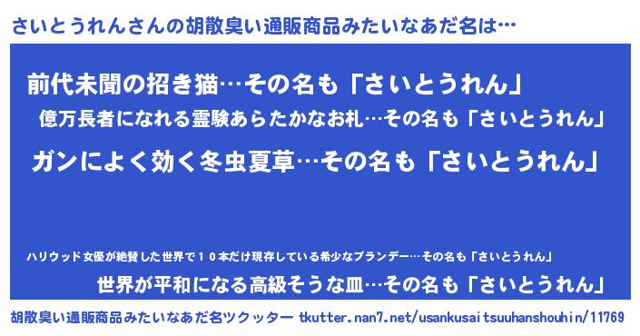 | 伝説のあだ名 | 『聞きしに勝る勇者さいとうれん』 |