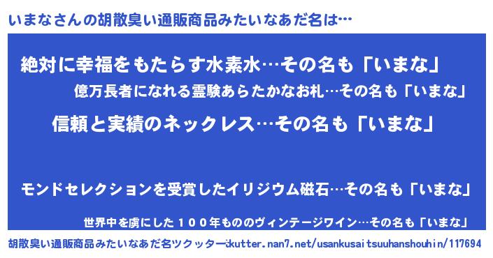 | 意味不明あだ名 | 『とにかく怪しいいまな』 |