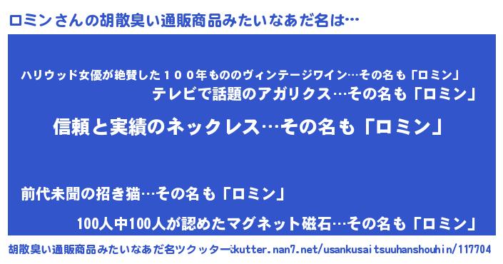 | ヘコむあだ名 | 『ロミっぺ』『ロミン(小並感)』 |