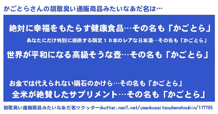 | ヒーロー風カッコイイあだ名 | 『ウルトラかごとらマン』『ネオカゴトラ』 |