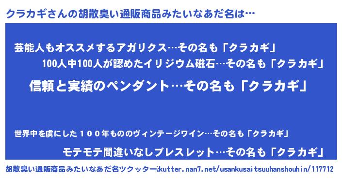 | 恥ずかしいあだ名 | 『クラリンリン』『クラカギデラックス』 |