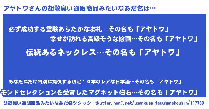 | 意味不明あだ名 | 『とにかく怪しいアヤトワ』 |