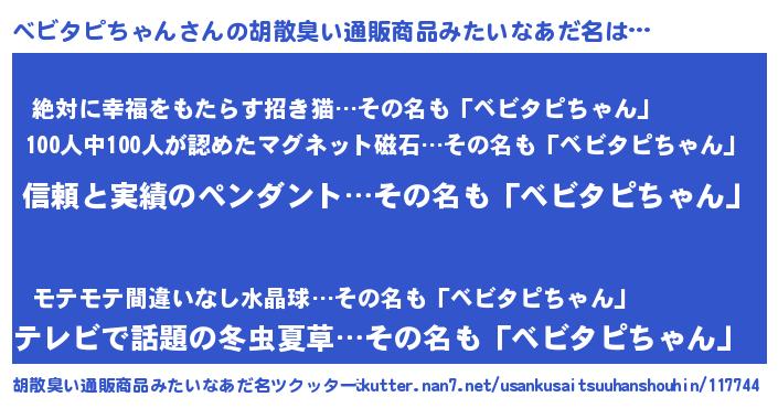 | ヘコむあだ名 | 『ベビっぺ』『ベビタピちゃん(笑)』 |