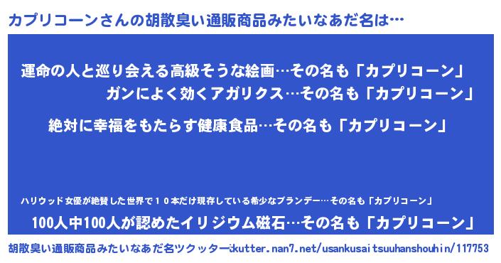 | 女子向けラノベタイトル風あだ名 | 『異世界で失敗しない100のカプリコーン』 |
