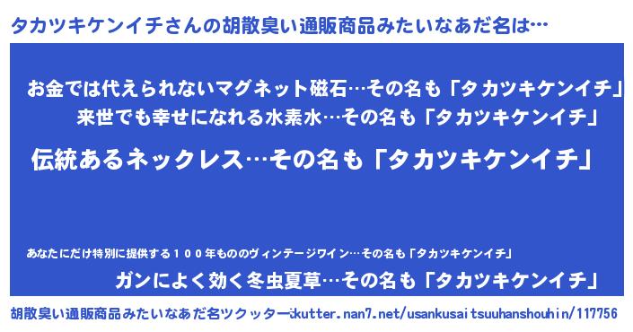 タカツキケンイチさんの胡散臭い通販商品みたいなあだ名をツクッター!