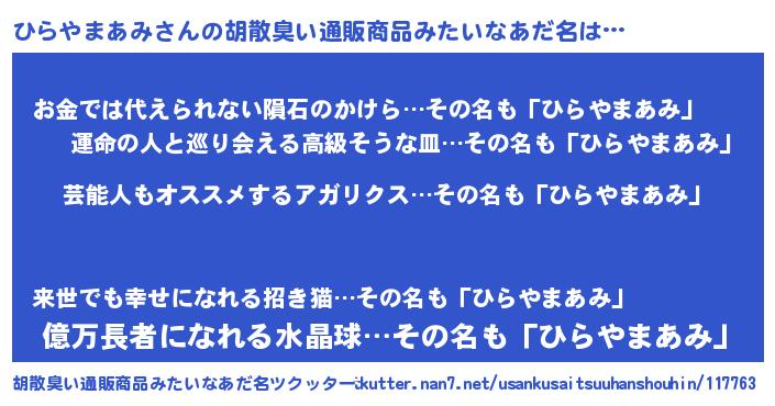 | 意味不明あだ名 | 『自称ひらやまあみ』 |