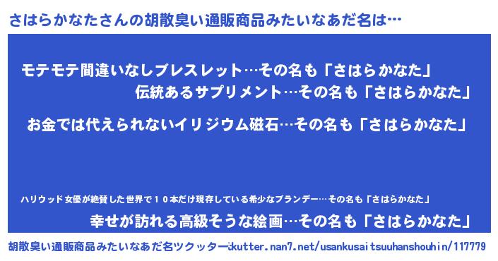 | 男性向けラノベタイトル風あだ名 | 『転生したらさはらかなただった件』 |