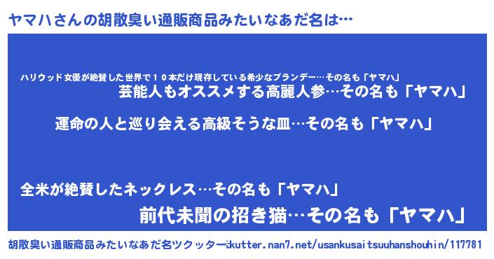 | 意味不明あだ名 | 『ヤマハフォーエバー』『永久保存ヤマハ』 |