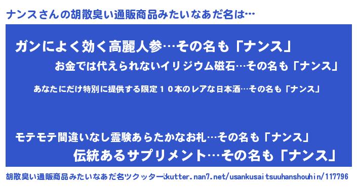 | ヒーロー風カッコイイあだ名 | 『仮面ナンダー』『ウルトラ戦士ナンス』 |