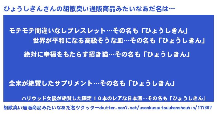 | ヘコむあだ名 | 『ひょうしきん(笑)』『ひょふぇ~』 |