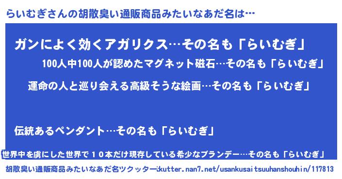 | ヘコむあだ名 | 『酢こんぶ』『らいを』『らいもー』 |