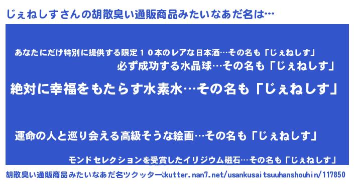 | ヘコむあだ名 | 『じぇねしす(遠い目)』『じぇもー』 |