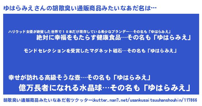 | ヒーロー風カッコイイあだ名 | 『慈愛の使者ゆはらみえ』『仮面ユハダー』 |