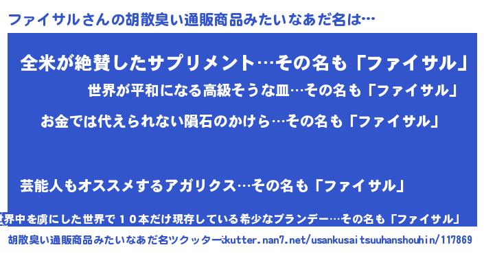 | 意味不明あだ名 | 『眠気覚ましガムファイサル味』 |