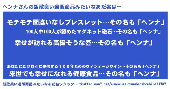 | ヒーロー風カッコイイあだ名 | 『ウルトラヘンナマン』『スーパーヘンナ』 |