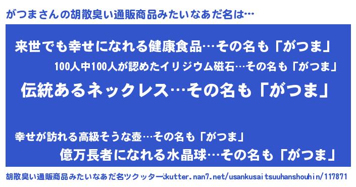 | ヘコむあだ名 | 『がつっぺ』『がつま(爆)』『牛乳』 |