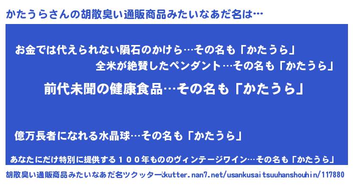 | ヘコむあだ名 | 『かたうら(笑)』『かたっちょ』 |